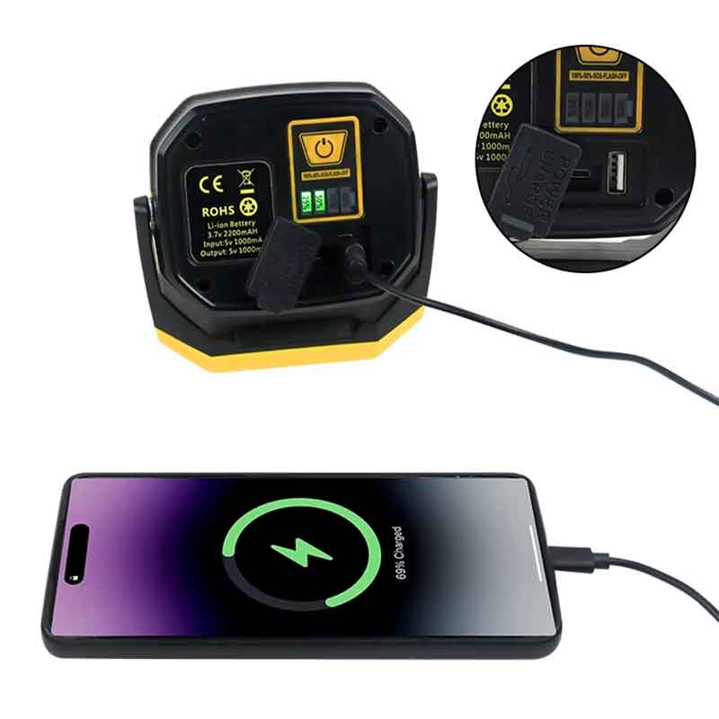 A: Ita. Portus USB-C sustinet utrumque input (praeferens worklight) et output (agens quasi ripam potentiae ad mobiles machinas onerandas).