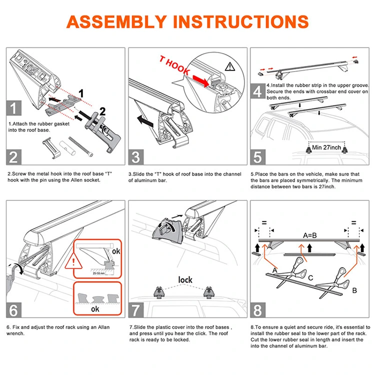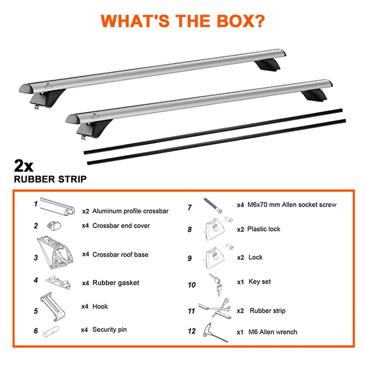Machinatum pro vehiculis cum rubore lateris cancellis, hi Tectum Rack Crucis Bars firmum suggestum praebent ad sarcinas transportandas, cursorias, armamenta aut castra. 14kg leve pondus aedificandum componit corrosio-repugnans aluminium mixturae et plastici impactae repugnans, ad vetustatem praestandam. Accessiones sunt 2 claves, clavis clavis, manualis instructio, et habena PVC ad institutionem vivam.